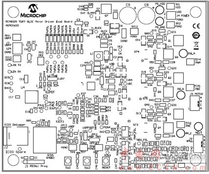 圖8. MCP8025 TQFP BLDC馬達(dá)驅(qū)動評估板PCB元件布局圖