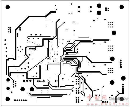 圖11. MCP8025 TQFP BLDC馬達(dá)驅(qū)動評估板PCB MID2金屬層設(shè)計圖