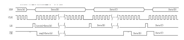 4. data(B)傳送完成后,由LE產(chǎn)生latch信號,鎖存data(B),并接著傳送data(C)