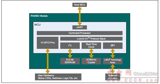 圖2. RN2903模塊應(yīng)用框圖