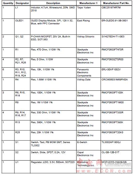 LoRa™ Mote演示板材料清單: