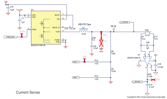圖6.評(píng)估板bq501210EVM-756電路圖:電流檢測(cè)電路
