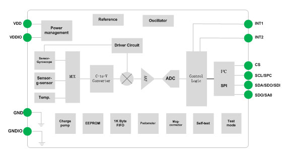 SC7I20采用士蘭微電子自有芯片工廠的慣性MEMS傳感器工藝,各項(xiàng)性能指標(biāo)均處于業(yè)內(nèi)領(lǐng)先水平,其中供電電壓為1.71V~3.6V,正常工作電流可低至 800uA,內(nèi)部陀螺儀噪聲小于5mdps/squarHz,加速度計(jì)噪聲小于100ug/squarHz,上機(jī)貼片零漂小于+/-10dps和50mg。同時(shí)針對(duì)智能遙控器、四軸飛行器、智能平衡車、VR-Box,士蘭微分別提供相應(yīng)的運(yùn)動(dòng)控制算法軟件包,幫助客戶產(chǎn)品快速上市。