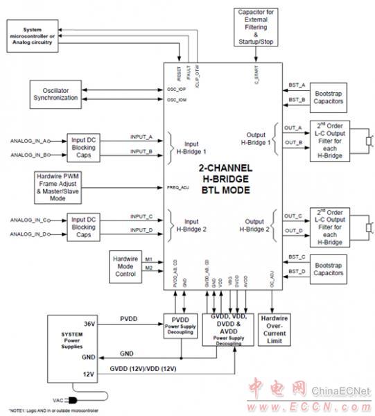 圖5.TPA3251差分(2N)PBTL應用電路圖