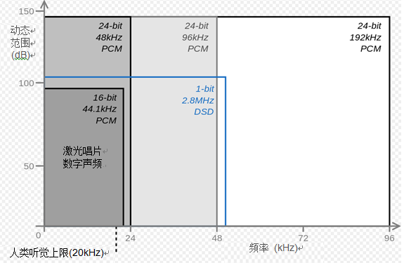 圖 1:一些聲頻格式的動(dòng)態(tài)范圍和帶寬