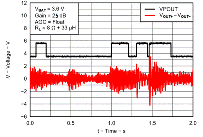 功率:8.0W (VBAT=4.2V, VPOUT = 8.0V, RL=4Ω, THD+N=5%);