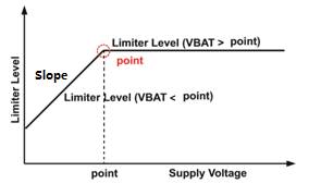 電池跟蹤功能開啟后,當(dāng)電池電壓低于設(shè)定值,HT862能隨電池電壓降低而逐步減小增益以限制電池電流,此舉進(jìn)一步支持了小容量低電流電池的應(yīng)用,并能大幅延長(zhǎng)電池續(xù)航時(shí)間,還能防止破音和過(guò)大的電流需求,減小電池端電壓波動(dòng),降低電池在低電量時(shí)提前進(jìn)入鎖死狀態(tài)的風(fēng)險(xiǎn),示意如下圖3。其中可調(diào)整電池跟蹤拐點(diǎn)(point)、電池跟蹤斜率(Slope)。對(duì)于電池容量較小、輸出電流能力小的電池應(yīng)用,適合高point值(如3.8V)、大Slope值(如≥3V/V);而對(duì)于電池容量較大、輸出電流能力強(qiáng)的電池應(yīng)用,適合低point值(如3.3V)、小Slope值(如≤3V/V)。