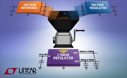凌力爾特公司 (Linear Technology Corporation) 推出包含兩個(gè)大電流輸出緩沖器的精準(zhǔn)電壓基準(zhǔn) LT6658;谝粋(gè) 2.5V 帶隙電壓基準(zhǔn),每路輸出可單獨(dú)地配置為 2.5V 至 6V 之間的任何電壓。兩路輸出都提供 0.05% 的初始準(zhǔn)確度、10ppm/°C 溫度漂移和僅為 1.5ppm 的低頻噪聲。這些輸出可分別驅(qū)動(dòng)高達(dá) 50mA 和 150mA,以及吸收高達(dá) 20mA。在負(fù)載電流高達(dá) 150mA 時(shí),典型負(fù)載調(diào)整率僅為 0.1ppm/mA。在并聯(lián)時(shí),緩沖器輸出可結(jié)合以提供甚至更大的電流。