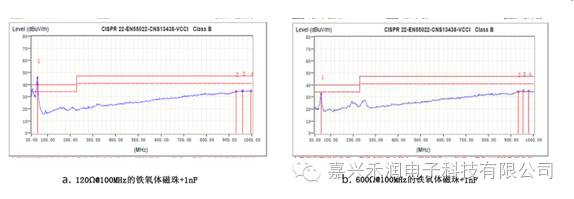 圖4為鐵氧體磁珠對于輻射性EMI的效果