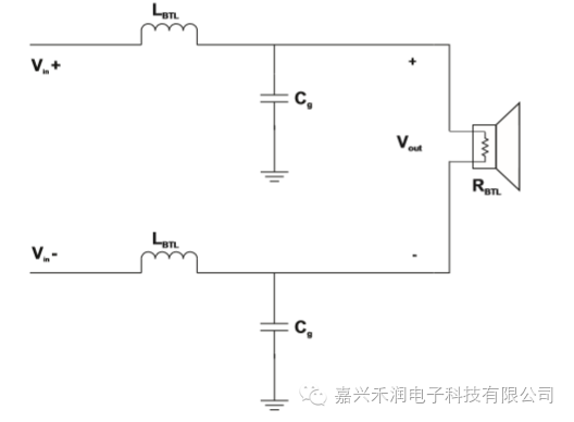 使用電感濾波,盡管價格昂貴,但抑制EMI效果非常明顯,仍被廣泛使用。對于傳統(tǒng)調(diào)制方式的D類音頻功放,可使用如下LC濾波。