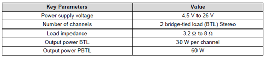 – 2×30W Into a 8-Ω BTL Load at 24 V(TPA3128D2)