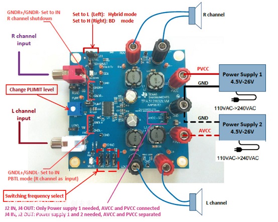 圖5.評估模塊TPA3128D2 EVM連接示意圖