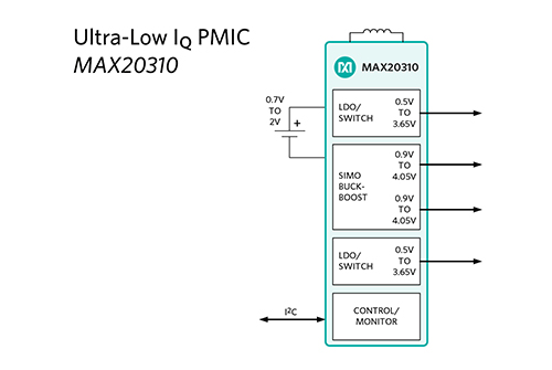 Maxim推出MAX20310超低靜態(tài)電流(IQ)電源管理集成電路(PMIC),支持原電池供電可穿戴及健身產(chǎn)品設(shè)計,方案尺寸大幅減小50%,有效延長電池壽命?纱┐鳟a(chǎn)品的PMIC需要支持低至0.7V的輸入電壓,適用于新型高能量密度電池架構(gòu),例如鋅空氣電池或氧化銀電池,以及越來越普及的堿性電池架構(gòu)。隨著個人及遠端監(jiān)測需求的市場推動,減小方案尺寸、延長電池壽命成為至關(guān)重要的因素。例如,美國聯(lián)合市場研究機構(gòu)(Allied Market Research)的一份報告顯示,預(yù)計全球遠程監(jiān)護市場將達到17%的年均復(fù)合增長率(CAGR),2022年將達到21.3億美元的市場規(guī)模1。