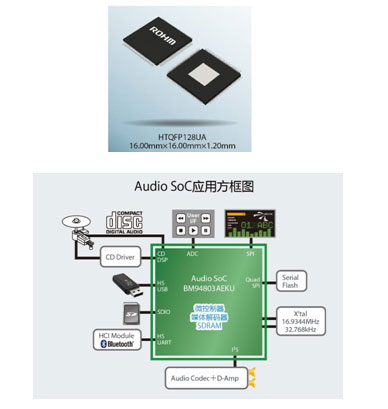 全球知名半導(dǎo)體制造商ROHM面向從傳統(tǒng)的收錄機(jī)、CD組合音響到最新的藍(lán)牙音箱、USB-DAC等各種音頻設(shè)備,開發(fā)出可播放所有常見音源、并將控制管理外圍部件和輸入輸出接口的機(jī)構(gòu)(可稱為音響應(yīng)用的大腦)集成于一枚芯片的支持高分辨率*1的Audio SoC*2“BM94803AEKU”。
