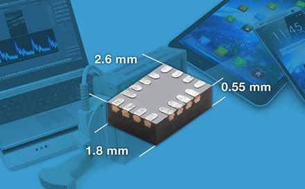 近似電阻值的對標(biāo)器件的電阻平坦度為500mΩ,而今天發(fā)布的這顆器件的平坦度為10mΩ,使THD達(dá)到-100dB。另外,DG2788A的寄生電容CON為26pF,COFF為14.5pF,比對標(biāo)器件低70%,-3dB帶寬為338MHz。開關(guān)的電壓范圍達(dá)5.5V,可用在常見的5V工業(yè)設(shè)計中。如果使用5V操作電壓,對標(biāo)器件需要用更大的封裝尺寸,才能將電阻值降到0.5Ω以下。