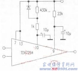 1.TDA7294的⑨腳為待機(jī)控制,⑩腳為靜音控制,圖1在若干推薦電路中,⑨腳都是經(jīng)20k電阻,⑩腳經(jīng)30k+10k電阻接電源正極,并稱能防止大電流對(duì)揚(yáng)聲器的沖擊,實(shí)現(xiàn)靜音開機(jī)。但在實(shí)際使用中并非如此,開機(jī)仍有沖擊聲。經(jīng)實(shí)驗(yàn)得知,開機(jī)沖擊電壓并不存在于功放級(jí)本身,而是由前級(jí)放大電路產(chǎn)生的。TDA7294的靜音待機(jī)電路,因⑨腳所串連電阻值小于⑩腳,⑨腳先升到高電位。先接通功放級(jí)電路,⑩腳后升到高電位,后接通前級(jí)信號(hào),其目的就是延遲并避開前級(jí)浪涌電壓到來對(duì)功放造成沖擊。但推介電路中,⑨、⑩腳所接電阻時(shí)間常數(shù)比值差別太小,能減輕而不能完全避開沖擊電壓,將⑩腳的10k電阻改為1k,將30k電阻改為430k,將二者之間的時(shí)差由原來的一倍增大至二十倍,即真正實(shí)現(xiàn)了在靜音條件下開機(jī)(二次開機(jī)間隔時(shí)間短于半小時(shí),電容所儲(chǔ)存的電能尚未釋放完畢,仍有沖擊聲)。同時(shí),因⑨腳20k電阻與⑩腳1k釋能電阻的時(shí)差也由原來的一倍加大到二十倍,因此,關(guān)機(jī)時(shí)⑩腳比⑨腳提前二十倍時(shí)差關(guān)閉前級(jí)信號(hào)電壓,故而關(guān)機(jī)沖擊聲也大大減輕。