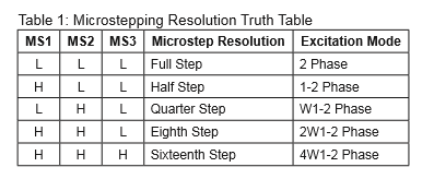分別是全步進,1/2步進,1/4步進,1/8步進,1/16步進模式。