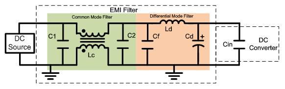 圖1是一個(gè)簡化的EMI濾波器,包括共模(CM)濾波器和差模(DM)濾波器。 通常,DM濾波器主要用于濾除小于30MHz的噪聲(DM噪聲),CM濾波器主要用于濾除30MHz至100MHz的噪聲(CM噪聲)。 但其實(shí)這兩個(gè)濾波器對(duì)于整個(gè)頻段的EMI噪聲都有一定的抑制作用。