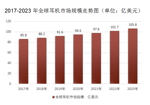 數(shù)據(jù)顯示,隨著全球耳機(jī)生產(chǎn)技術(shù)和材料的不斷升級(jí),智能產(chǎn)品市場(chǎng)的發(fā)展,全球耳機(jī)市場(chǎng)規(guī)模有望在2023年達(dá)到105.8億美元。在全球耳機(jī)出貨量穩(wěn)速增長(zhǎng)的情況下,耳機(jī)行業(yè)正在逐步升級(jí),主要表現(xiàn)為無線耳機(jī)替代有線耳機(jī),藍(lán)牙耳機(jī)占比提升,同時(shí)耳機(jī)走向智能化。