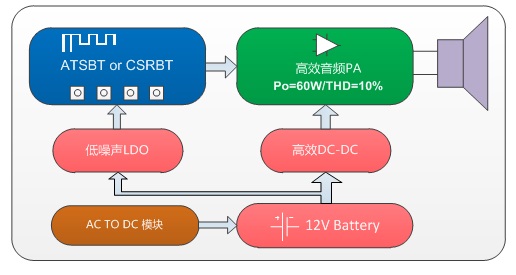 方案七:12V鉛酸電池電池單聲道60W/10%THD
