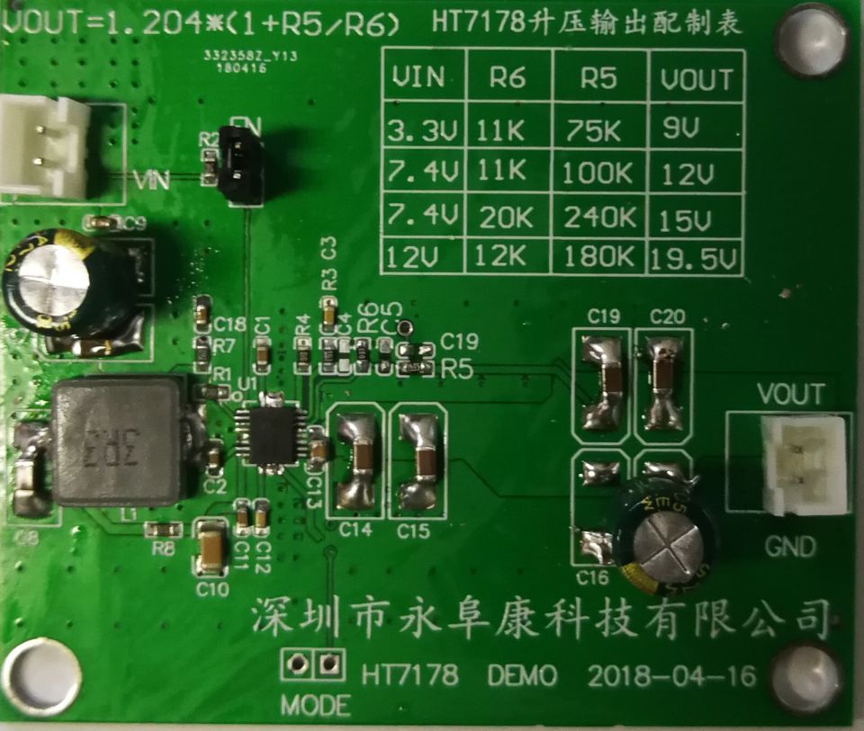 HT7178具有2.7V至12V寬輸入電壓范圍,可為采用單節(jié)或兩節(jié)鋰電池,或12V鉛酸電池的應(yīng)用提供支持。該器件具備12A開關(guān)電流能力,并且能夠提供高達20V的輸出電壓。