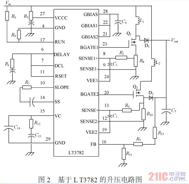 針對這一問題,該文提出基于兩相步進升壓型DC/DC控制器LT3782設計大電流輸出的升壓型DC/DC模塊的方法。
