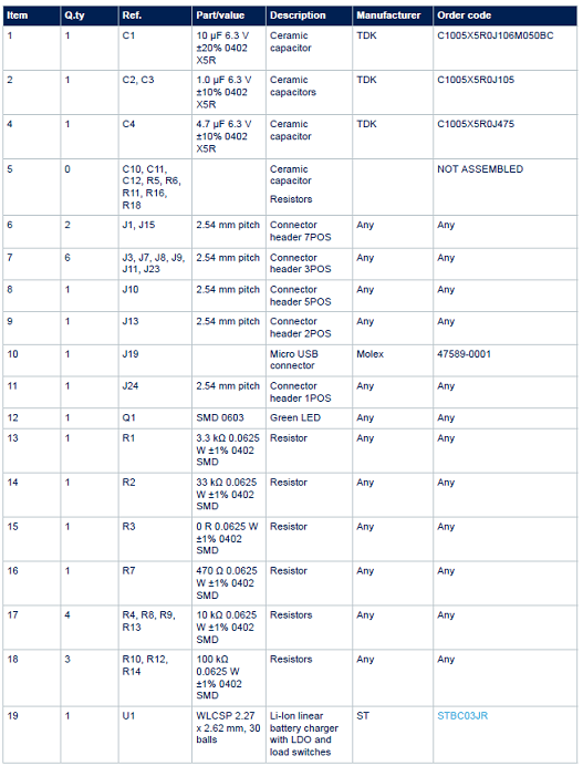 評估板STEVAL-ISB035V1材料清單: