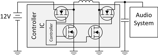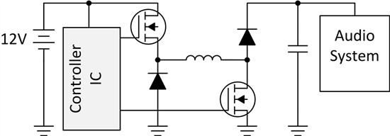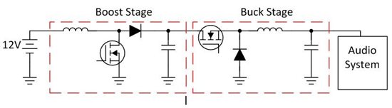 假設(shè)我們正在設(shè)計一款由12V鉛酸電池直接供電的12V汽車音響系統(tǒng)。如何使音響系統(tǒng)保持恒定的輸入電壓?記住,如上所述,電池電壓的波動范圍可達3V至16V。降壓轉(zhuǎn)換器有用嗎?不行。當(dāng)電池電壓低于12V時,音響系統(tǒng)的輸入將下降,可能會導(dǎo)致欠壓狀態(tài)。我們來試一下升壓轉(zhuǎn)換器。還是不行。當(dāng)電池電壓大于12V時,音響系統(tǒng)的輸入將上升,可能導(dǎo)致過電壓狀態(tài)并損壞電子設(shè)備。我們需要的是降壓 - 升壓轉(zhuǎn)換器。顧名思義,無論輸入電壓如何,該拓撲都可以降壓或升壓到穩(wěn)定的輸出電壓。最重要的是,即使電壓波動,它也能提供恒定的能量。圖2所示為降壓拓撲的簡單級聯(lián)升壓。