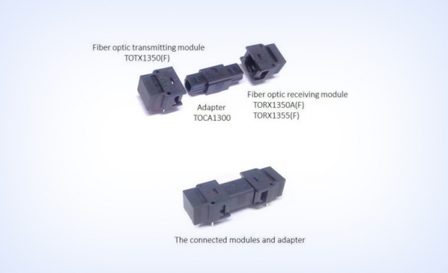 該款新產(chǎn)品為單向光模塊適配器,用于連接光纖傳輸模塊和光纖接收模塊進行短距離數(shù)據(jù)傳輸。在需要比采用光電耦合器時的絕緣距離更長,以及比光纖電纜的傳輸距離更短的場合,TOCA1300可代替光纖。 該適配器與東芝光纖耦合器[2]相結(jié)合可實現(xiàn)光傳輸。
