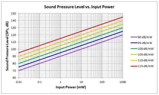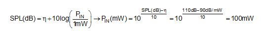 使用方程式1或圖1,首先確定達(dá)到SPL目標(biāo)值所需的輸入功率: