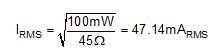 下一步,計(jì)算將這個(gè)功率量提供給耳機(jī)所需要的電壓和電流: