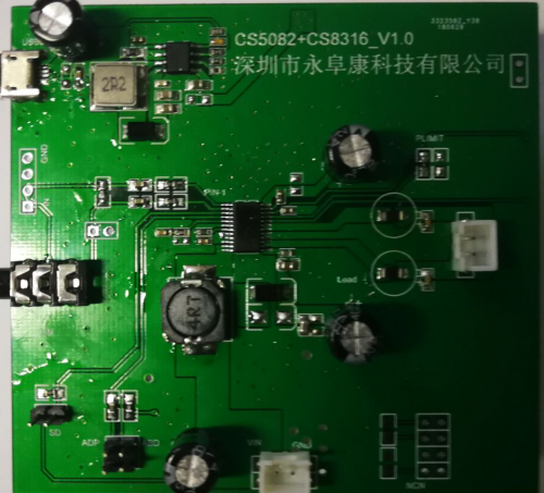 CS8316+CS5082組成5V USB輸入、雙節(jié)鋰電池串聯(lián)應(yīng)用、升壓充電實(shí)現(xiàn)25W恒定功率輸出完整解決方案,典型原理圖如下: