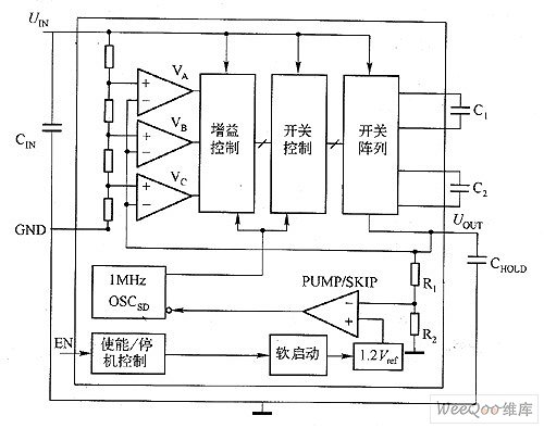 圖1 電容式電荷泵的內(nèi)部結(jié)構(gòu)