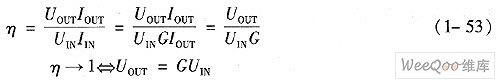 調(diào)壓電荷泵在一個(gè)寬的輸入范圍內(nèi)不能維持高的效率,因?yàn)檩斎耄敵鲭娏鞅仁歉鶕?jù)基本的電壓轉(zhuǎn)換進(jìn)行調(diào)節(jié)的,任何比輸入電壓乘以電荷泵增益所得的值更低的輸出電壓將導(dǎo)致變換器內(nèi)額外的功耗,并且效率會(huì)成比例地降低,參考下式的說明。