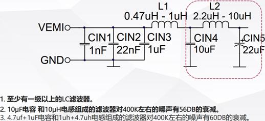 所有的LC濾波器都是以電感結(jié)束,并且要遠(yuǎn)離DCDC的高頻環(huán)路。防止電流環(huán)路的近場磁場效應(yīng)對輸入濾波器的影響。