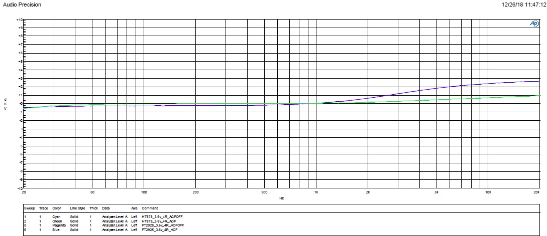 4. 頻響測試,HT878整個頻段相對平坦,F(xiàn)T2925高頻有相應(yīng)提升。