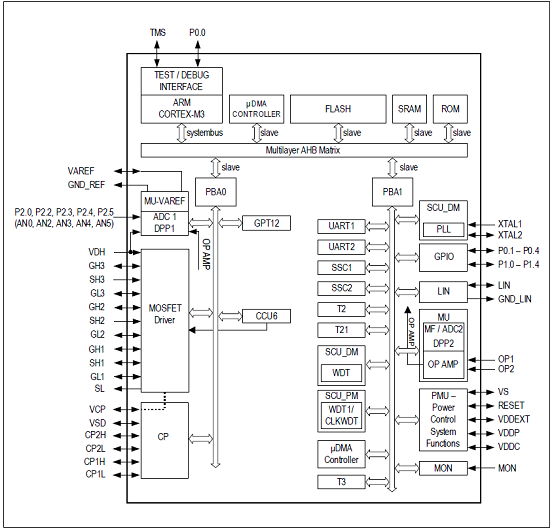 圖4.TLE9879QXA20系統(tǒng)控制單元-功率模塊框圖