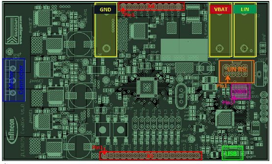 圖9.評估板TLE9879 EvalKit V1.2連接圖