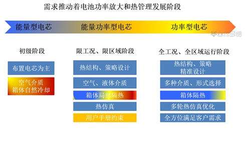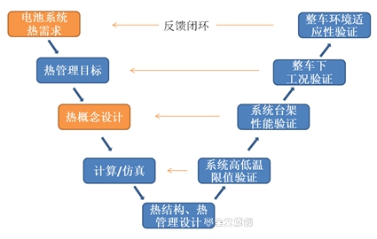 在車用動力電池系統(tǒng)早期的設(shè)計中,不乏以電池布置為主。打開箱體,滿滿當(dāng)當(dāng)?shù)亩际请姵,熱管理設(shè)計難覓蹤影或被弱化,沒有作為關(guān)鍵環(huán)節(jié)對待。近些年,這種情況發(fā)生了根本變化,客戶對“縮小使用差距(和燃油車)”很迫切,從功率角度、環(huán)境適應(yīng)性,對電池系統(tǒng)提出了更高的要求,熱管理被賦予了新的使命。這就需要運用科學(xué)完整的開發(fā)流程,循序漸進(jìn),認(rèn)真對待每一個小環(huán)節(jié),讓熱設(shè)計滿足電池系統(tǒng)要求。