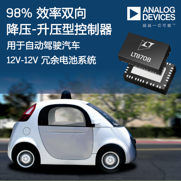 Analog Devices, Inc (ADI)宣布推出 Power by Linear™ LT8708/-1,這款效率達 98% 的雙向降壓-升壓型開關(guān)穩(wěn)壓控制器在兩個具有相同電壓的電池之間運行,非常適合在自動駕駛汽車中提供冗余電源。LT8708/-1 利用一個輸入電壓供電運行,該輸入電壓可以高于、低于或等于輸出電壓,這使其十分適合電動汽車和混合動力汽車中常見的兩個各為 12V、24V 或 48V 的電池。該器件在兩個電池之間運行,可避免在其中一個電池出現(xiàn)故障的情況下發(fā)生系統(tǒng)停機。另外,LT8708/-1 還可在 48V/12V 和 48V/24V 雙電池系統(tǒng)中使用。