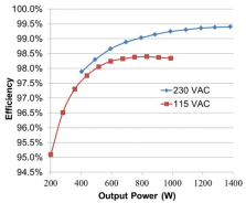 UnitedSiC的一個演示板額定功率為1.5 kW,使用工作頻率為100 kHz的UJC06505K SiC共源共柵,演示結(jié)果表明,達(dá)到了80PLUS Titanium效能目標(biāo),并具有一定的余量(見圖5)。