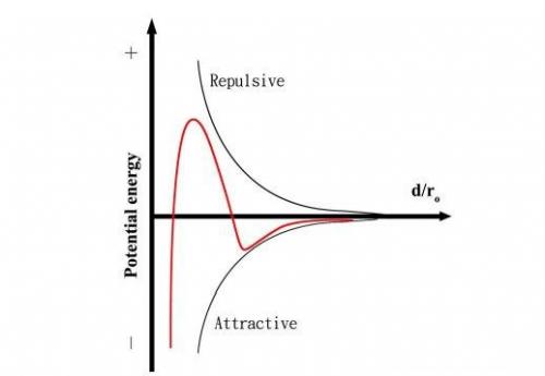 下圖為DLVO示意圖,表示膠體粒子之間存在吸引力與排斥力,這兩種作用力的大小決定膠體溶液的穩(wěn)定性,粒子間的吸引力為主要作用,則粒子將產(chǎn)生團(tuán)聚;而排斥力大于吸引力的狀態(tài)下,則可避免粒子凝聚而保持膠體的穩(wěn)定性。
