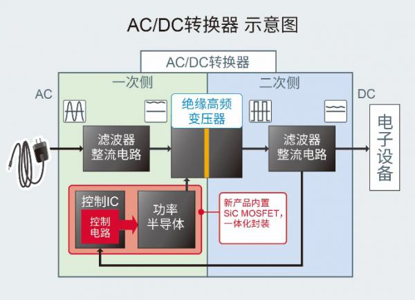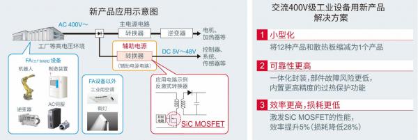 近年來(lái),隨著節(jié)能意識(shí)的提高,在交流400V工業(yè)設(shè)備領(lǐng)域,相比現(xiàn)有的Si功率半導(dǎo)體,可支持更高電壓、更節(jié)能、更小型的SiC功率半導(dǎo)體的應(yīng)用越來(lái)越廣。而另一方面,在工業(yè)設(shè)備中,除了主電源電路之外,還內(nèi)置有為各種控制系統(tǒng)提供電源電壓的輔助電源,輔助電源中廣泛采用了耐壓較低的Si-MOSFET和損耗較大的IGBT,在節(jié)能方面存在很大課題。