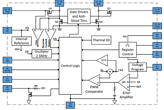 This IC is available in a small 2.125x1.750mm, 20 balls WLCSP package