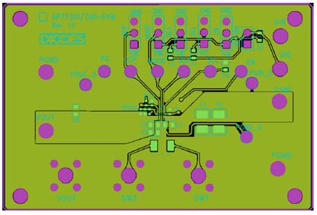 圖5.評(píng)估板AP72200-EVM PCB設(shè)計(jì)圖:頂層