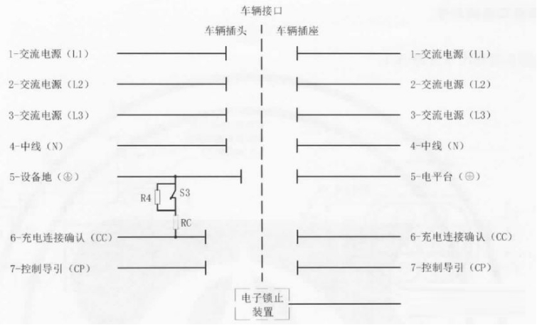 S3位于充電插頭處,與充電槍上的機械鎖聯(lián)動,默認(rèn)是導(dǎo)通狀態(tài),用于車輛確認(rèn)插頭的連接狀態(tài);當(dāng)按下充電槍機械按鍵、準(zhǔn)備插槍時,S3是斷開的,R4與RC成串聯(lián)狀態(tài);插入后,松開按鍵,S3又變回導(dǎo)通狀態(tài),將R4短路;