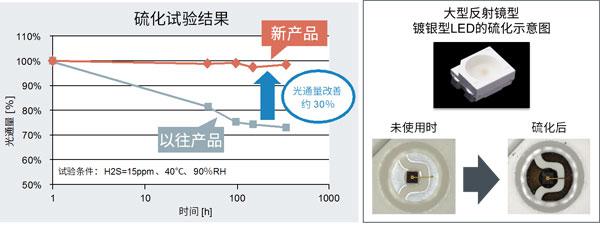 為了確?煽啃,抗硫化對(duì)策也是必不可缺的。因?yàn)樵趷毫拥氖褂铆h(huán)境中,在使用電子元器件的汽車(chē)領(lǐng)域應(yīng)用中,空氣中的硫化氫(汽車(chē)和工廠排放的廢氣中也含有該成分)作用于銀等金屬材料的表面上,形成腐蝕并使其表面發(fā)黑變暗,這種硫化已成為經(jīng)年老化的主要原因。