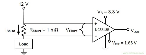 圖3:NCS213R測試電路電路圖。輸出靜態(tài)電壓1.65 V
