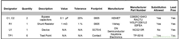 表3:NCS213R客戶評估板(PCB)物料單(BOM)