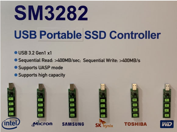 目前巿場(chǎng)上可攜式SSD均采用橋接芯片設(shè)計(jì),將原SATA或PCIe接口轉(zhuǎn)接為USB接口。SM3282為單芯片USB 3.2 Gen 1接口設(shè)計(jì),提供完整的單芯片硬件及軟件解決方案,并支持UASP協(xié)議。此外,SM3282采用雙通道設(shè)計(jì),支持最新一代96層QLC NAND,其容量最高可達(dá)2TB;同時(shí),由于采用低功耗設(shè)計(jì),毋須外部電源IC即可自行運(yùn)作,降低物料(BOM)成本。